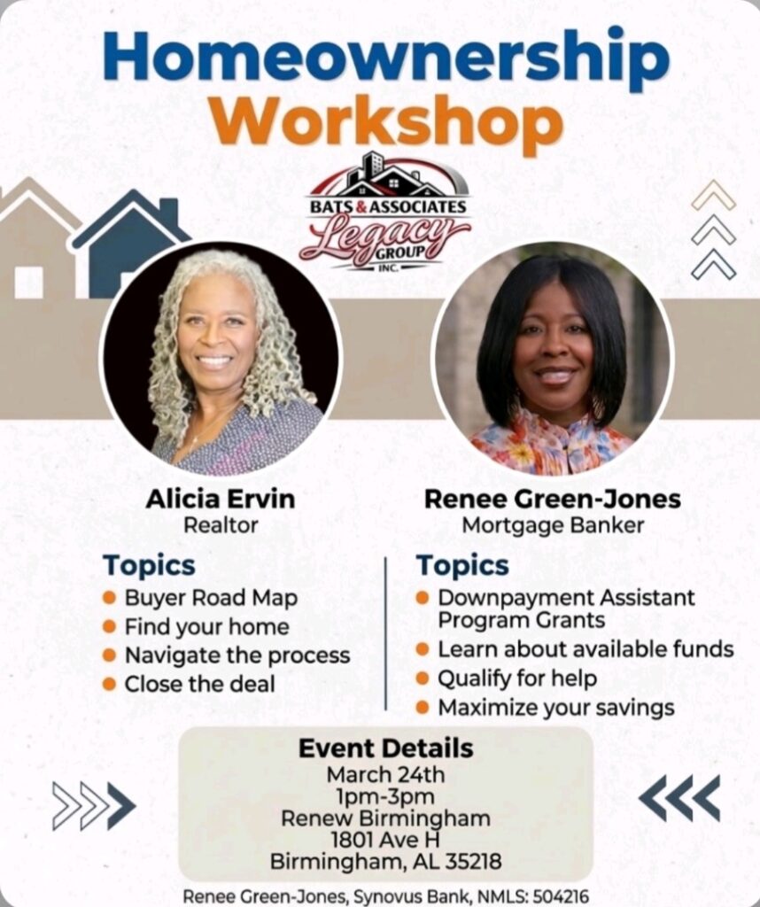 Renew Birmingham invites community members to join us for an upcoming Homeownership Workshop designed to empower residents with the knowledge and tools needed to achieve stable, long-term housing. As part of our commitment to strengthening neighborhoods and promoting economic mobility, this workshop will provide guidance on the homebuying process, financial readiness, and available resources. By helping individuals and families take steps toward homeownership, we are investing in stronger households, increased community pride, and a more vibrant, connected Birmingham.