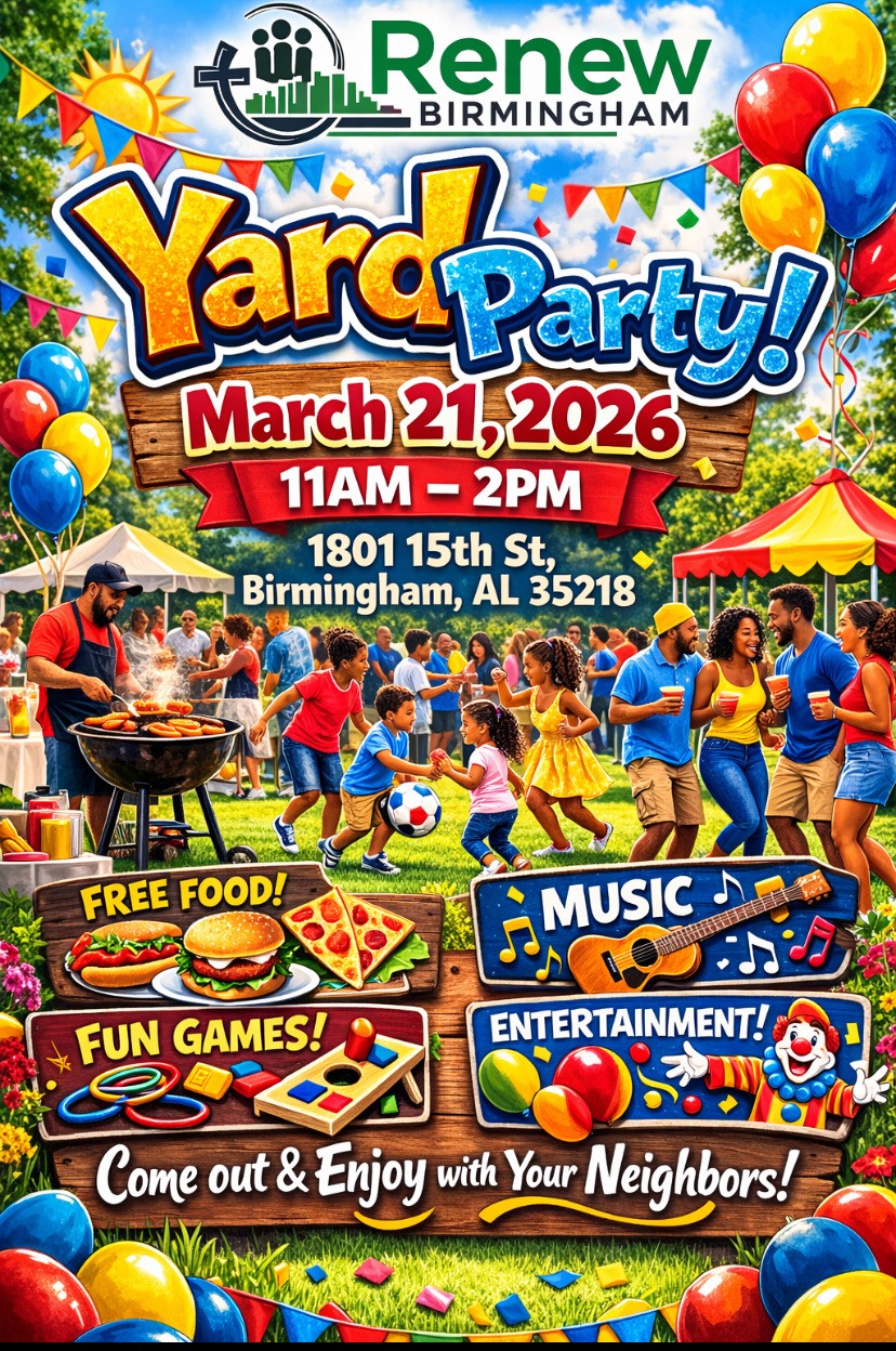 Join Renew Birmingham for an afternoon of fun, food, music, and connection with your neighbors. Bring your family, meet new friends, and enjoy a welcoming space filled with games, resources,…